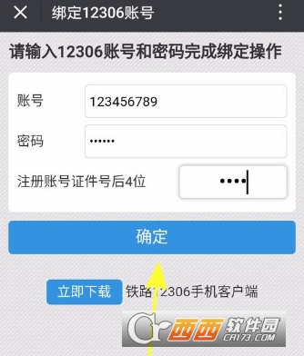 进入绑定12306账号的页面,输入需要绑定微信的12306账号、密码和注册账号身份证号的后4位。