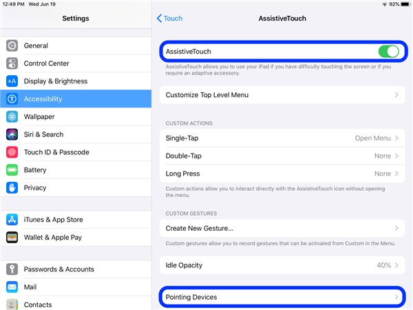 开启辅助触控并配对鼠标后,iPad上会出现一个类似“小白点”的圆形鼠标指针;
