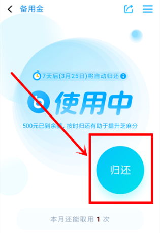 4、如需提前还款,也可点击【预留金】主界面的【退回】选项,完成付款退回