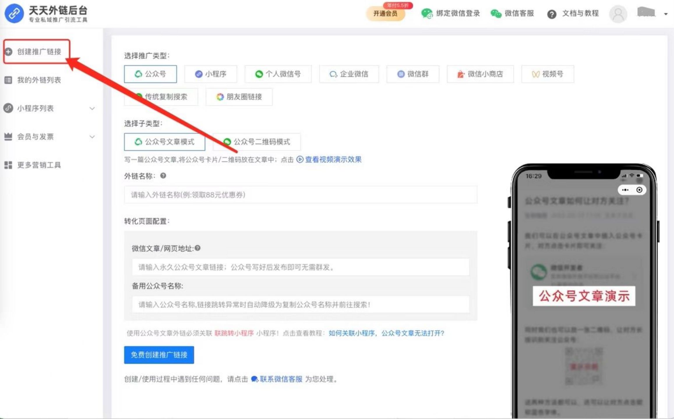 最后点击“免费创建推广链接”,找到刚刚生成的链接,放到登陆页面。(注意必须是新生成的链接,注意链接的准确性。)