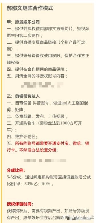 据传,5万元以下的销售额分成比例是7:3,5万-10万的销售额对应的分成比例是6:4,10万元以上的销售额可以5:5分成。而像郝劭文,黄圣依,直接给剪辑号50%分成。许多Tik Tok的镰刀手也玩这个游戏。他自己说话,搞直播和连线,然后200多个销售人员剪下来,课后卖线,卖私董会几千年。