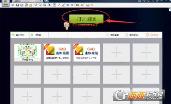 1.首先打开电脑中的cad mini-view软件,然后点击其界面中间的“添加图纸”按钮,添加你要用微信分享的图纸;