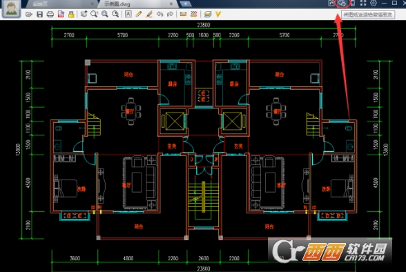 2.添加后,找到其界面右上角的“微信图标”按钮,点击即可cad迷你查看图纸,会自动生成图纸的二维码;