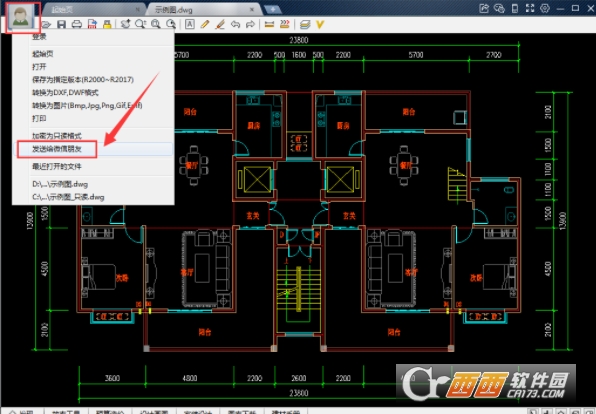 4.或者我们可以点击cad小视图界面左上角头像中的“发送给微信好友”,也可以将图纸分享到微信中。