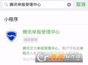 在小程序界面,在顶部的放大镜中输入“腾讯举报受理中心”,然后点击搜索;