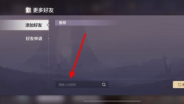 在添加朋友中,在& ldquo下面。请输入识别码& rdquo在选项框中,粘贴你复制的好友ID,就可以添加好友了。
