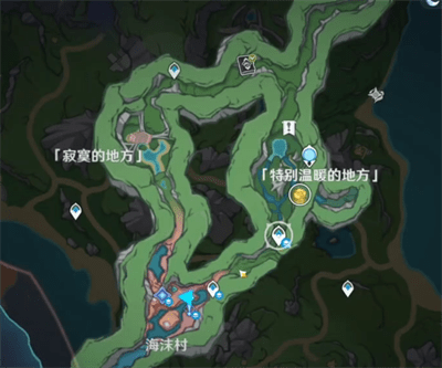 最后爬上陆地往前走,进入大洞穴,跳到新的区域【特别温暖的地方】。进入后,打开锚点解锁传输功能。