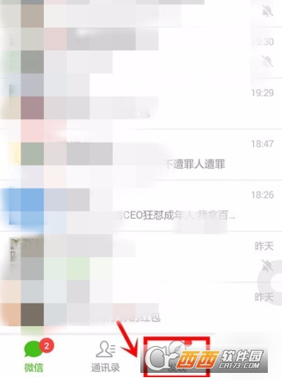 2.在打开的微信首页,我们选择“发现”模块;