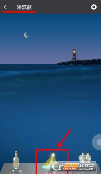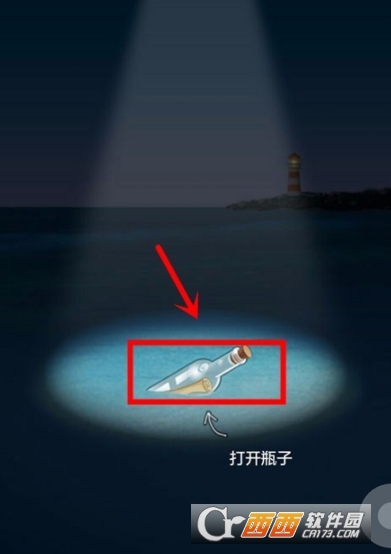 5.这时,我们可以在页面的海水图片中看到一个漂流瓶,我们点击漂流瓶;