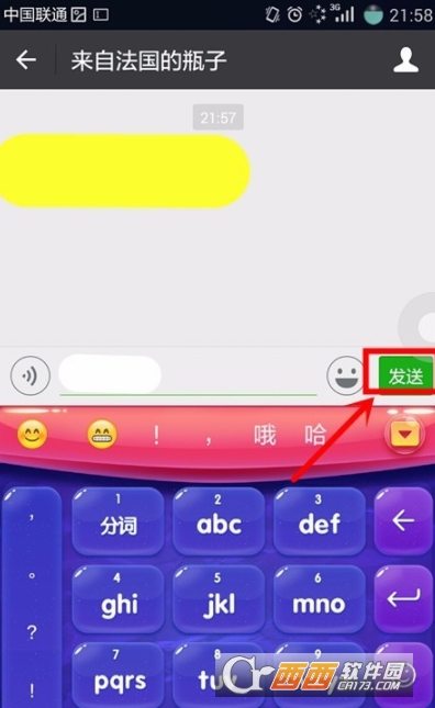 8.我们输入想说的话后,只需点击文本框旁边的“发送”即可。