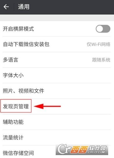 6.在发现页面管理中,可以看到:摇一摇、附近的人、搜索、朋友圈、漂流瓶等功能。如果需要任何功能,可以点击“开”,但不需要选择“关”。
