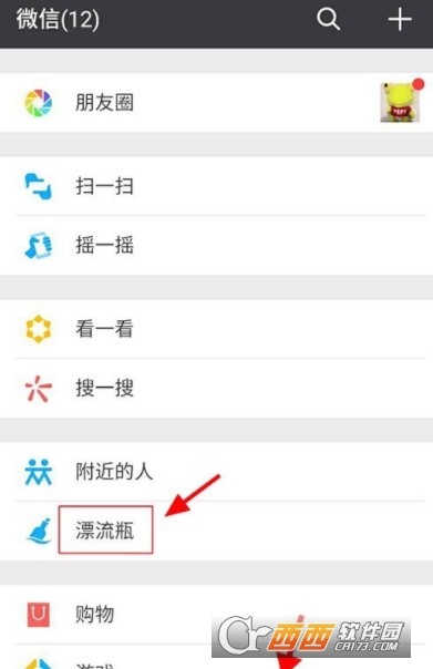 8.然后点击进入“漂流瓶”,就可以扔瓶子了。