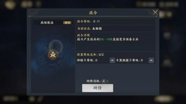 以兵种属性相关的被动法令为例,领主要优先学习自己阵容的主要兵种相关的法令,然后学习解锁特殊兵种法令,最后解锁战争中回合效果相关的战斗法令。