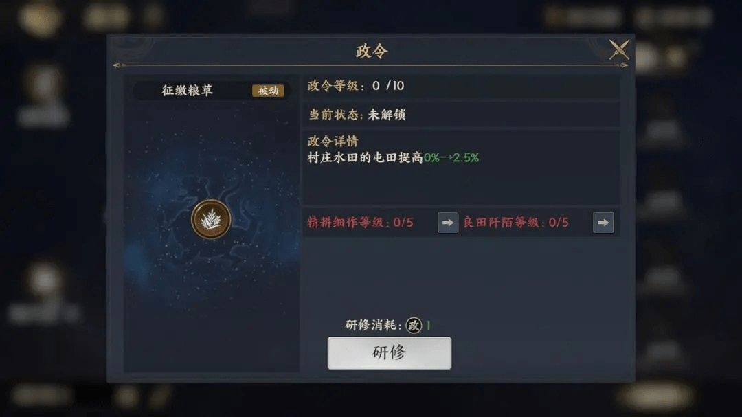 比如为了减少粮草消耗,可以考虑选择训练& ldquo战场愈合& rdquo、& ldquo多交粮草& rdquo两项法令是有针对性的。