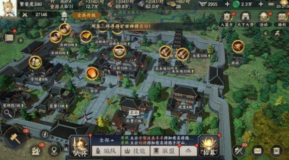 但是游戏前期和中期,科技树解锁较少,阵型阵容不全。此外,小到维持村庄管理、清理汉奸土匪,大到攻城伏兵防御,都需要编队作战,因此如何利用有限的军事资源完成更多的战略活动是游戏整体战略的关键。