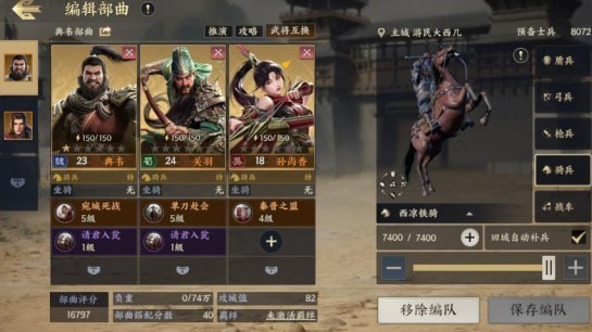 当然,业务之外的游戏战斗策略部分也是重中之重。首先,《战地无国界》采用了英雄武将和兵种的组合,玩家可以自由选择三部曲中的武将,并根据其特点搭配合适的阵型兵种。