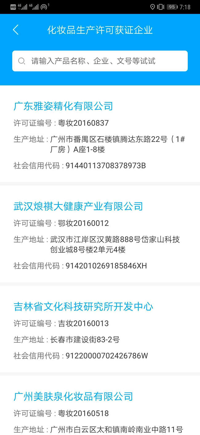 还可以搜索化妆品生产许可证认证企业等