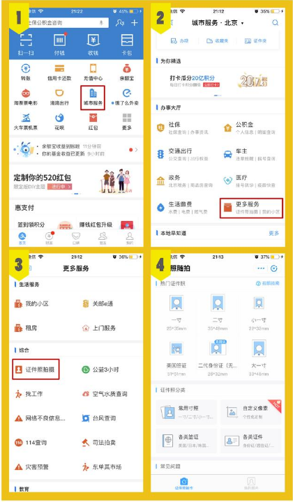 或从“家乡-城市服务-办公大厅-更多服务-综合-证件照拍摄”进入: