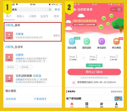 如果你有蚂蚁森林,还可以通过使用“白鲸”获得蚂蚁森林能量。每公斤旧衣服可以获得158克能量,每天最多获得9763克,每个用户每月最多可以获得5次。