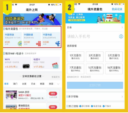如果您的手机号码不具备国际及港澳台数据漫游功能,可以租用海外WiFi或购买电话卡。如果你有芝麻信用,就可以免费获得押金。