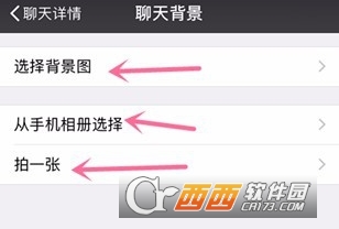 然后根据选项,我们可以从微信里选择默认的背景图片,或者手机相册里的照片,或者现在拍一张照片,改成自己的聊天背景图片;