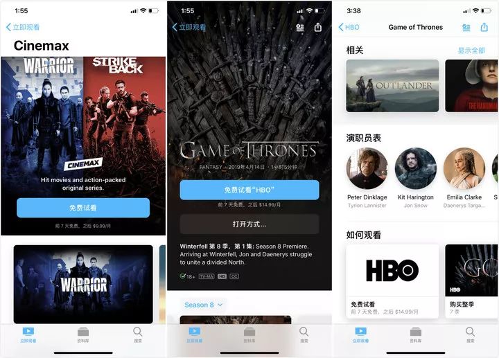 当然,Apple TV+最重要的还是视频流媒体的统一订阅。也就是说,现在你可以直接在Apple TV+ 上订阅HBO、Starz、Cinemax 等多种视频服务,并且可以直接通过Apple TV+ 进行播放、管理订阅等。