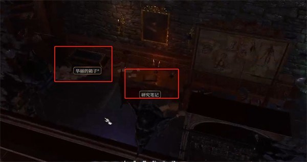 3.插入心脏后,书架中间的门就会打开。我们可以在这里的桌子上找到一份研究笔记,左手边有一个华丽的盒子。