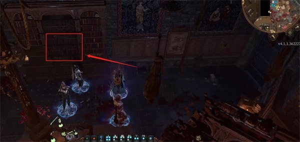 1.我们先来到了升月塔的一楼,在这里可以找到一个突出的书架,书架中间的门可以打开。
