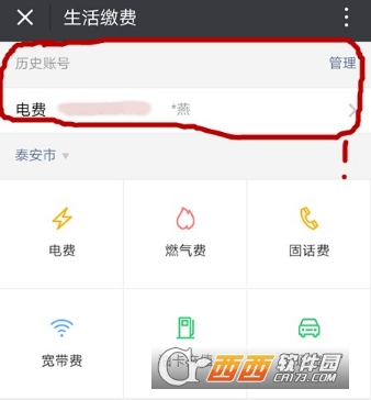 在“生活缴费”的选项页面中,屏幕上方有一个“历史账户”,会呈现自己的电费单号信息。