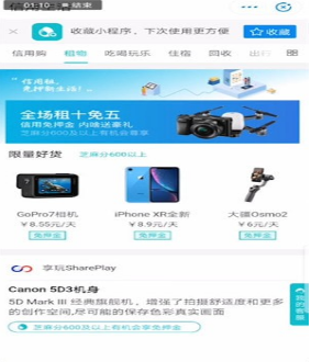 4、使用支付宝免押金服务,如小黄车、借用充电宝、雨伞等。