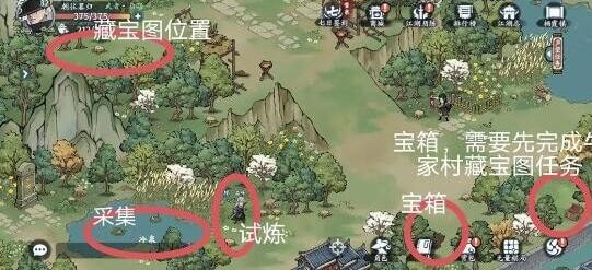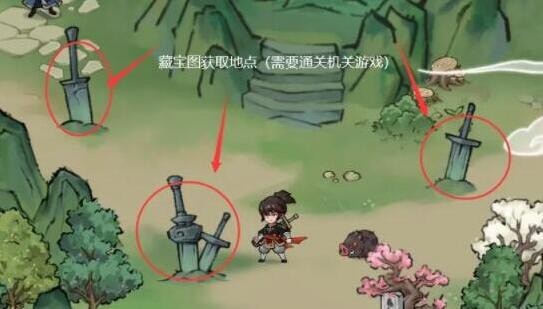 3.玩家可以在山坡上的小木桩附近找到藏宝图。