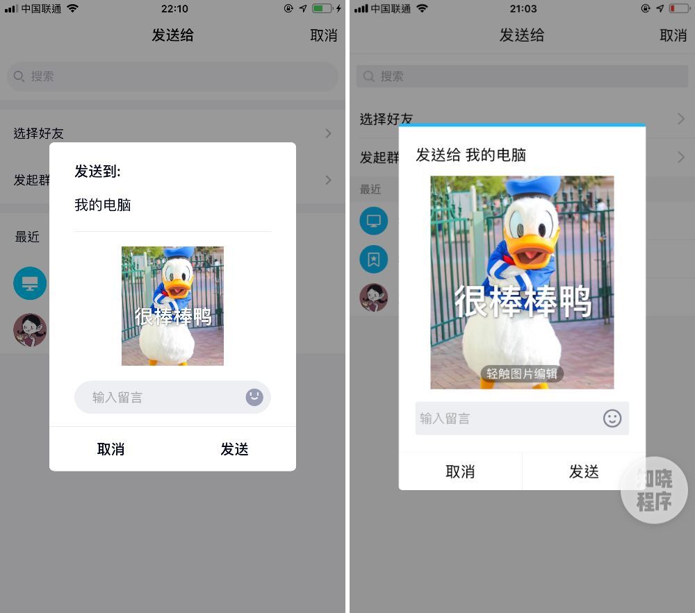 QQ 7.9.9及以下版本,转发时可以编辑图片;但在iOS版QQ 8.0.0中,转发图片的操作变得和微信类似,只能附加消息,不能编辑图片。