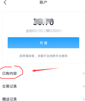 2.在帐户页面上,点击购买的内容,如下图红框所示。
