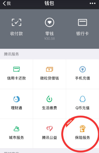 可以在微信钱包的九宫格里找到“保险服务”(因为微博还在公测阶段,只有部分微信用户可以先体验,以后会逐步开放)。