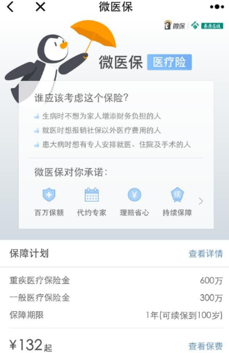 微保起步价才132。买了小额保险后,重疾最高可赔600万,一般疾病最高可赔300万。生病了可以报销。