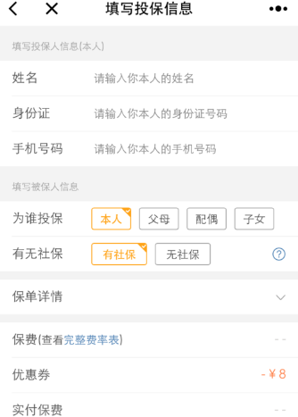 投保时需要填写具体的投保信息,包括个人身份信息。你可以在这里为自己或家人投保。填写完整并核对无误后,点击下方立即支付,通过微信完成购买。