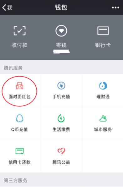 2.进入页面后,可以看到图中所示的“面对面红包”。