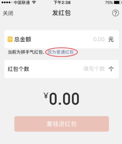 4.这时可以看到文字提醒是幸运红包,点击“普通红包”。