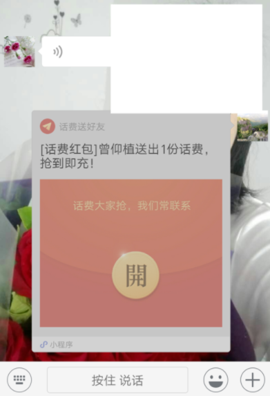 8.和朋友聊天界面会显示话费红包,打开就可以领取,如图。