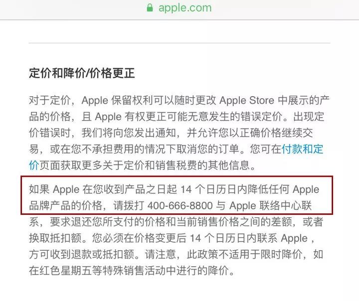 已收到:只需在收到产品之日起14个日历日内致电400-666-8800,要求退还差价。然而,今天苹果热线却爆满,需要1-2个小时才能接通。推荐。如果你不着急的话,可以过两天再打电话。