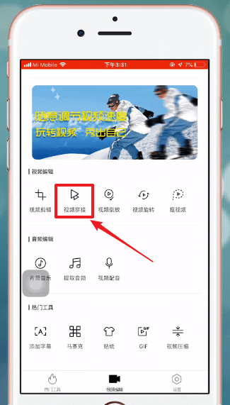 打开【爱编辑】,点击【视频编辑】,选择【视频拼接】;