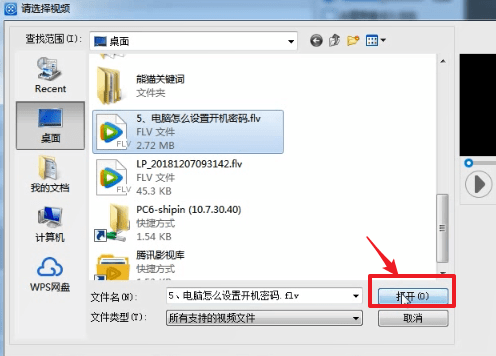 选择需要编辑的视频,点击【打开】;