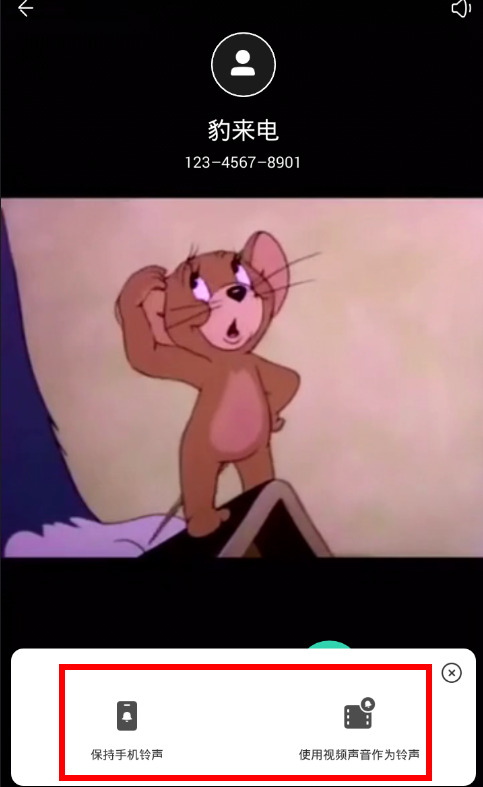3、之后您可以选择来电铃声是继续使用手机铃声还是使用视频声音作为铃声。您也可以通过右上角的按钮关闭铃声。到