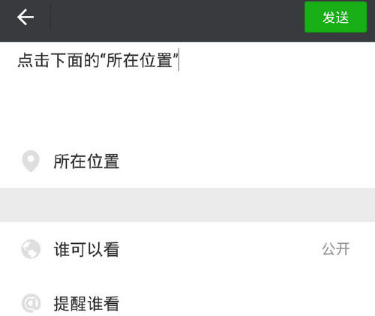 此时,您可以在位置处看到我们刚刚自己创建的位置。点击“发送”后,您的朋友可以看到该位置。