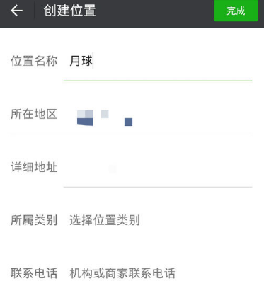 微信发送的自定义位置中,已经创建的位置不能重复创建!