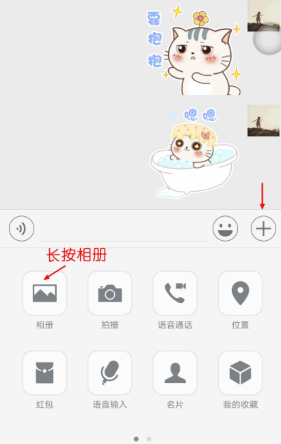 2.长按“相册”,手机会自动进入原生拍照模式。