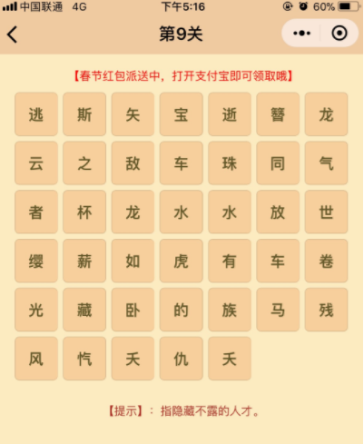 习语“消弭享乐,一飞冲天”的答案是9级。