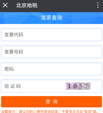 在打开的北京地税页面,输入要查询的发票的编码、号码、密码,点击查询即可看到发票的相关信息。
