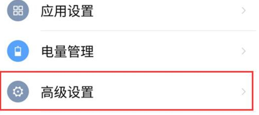 然后点击进入设置界面,找到【高级设置】选项,点击打开