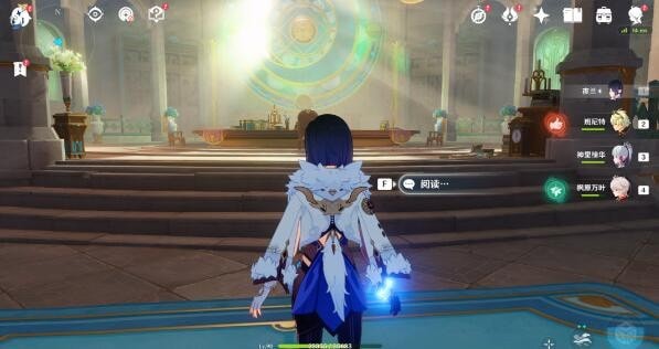 2.回到自然哲学学院,从传送点出发,往里面走,尽头出现了一个新房间,我们在课桌后面互动。